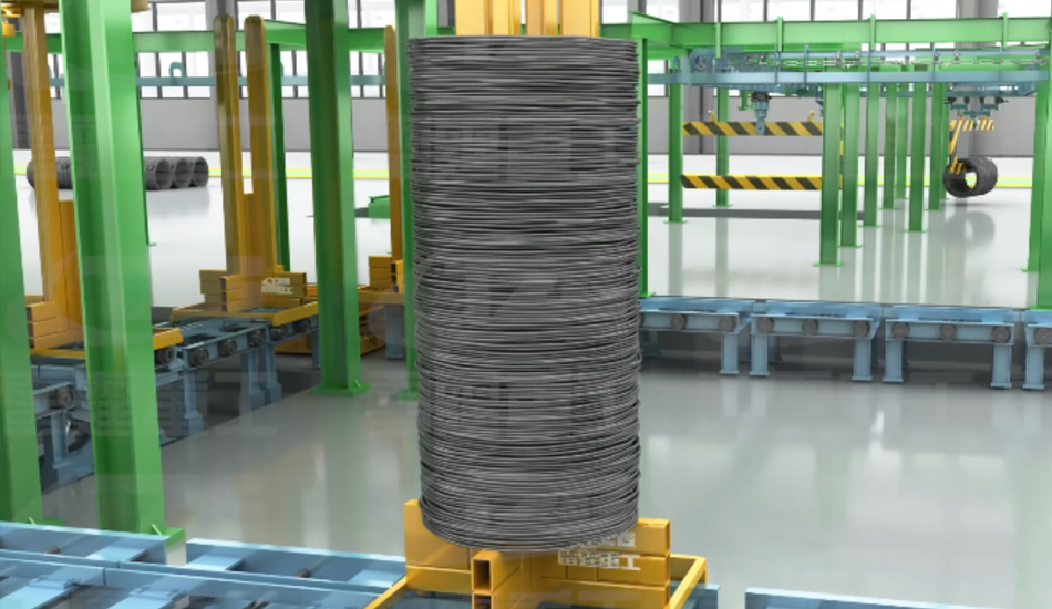 • 組成:A型,集卷筒、托板升降裝置,B型,風冷末端、集卷筒.托板升降裝置.舉升機構,位置:位于散卷冷卻運輸機尾部下方,作用:把來自散卷運輸機的散狀線圈收集成盤卷并套在卷芯架上通過立卷運輸線移走。